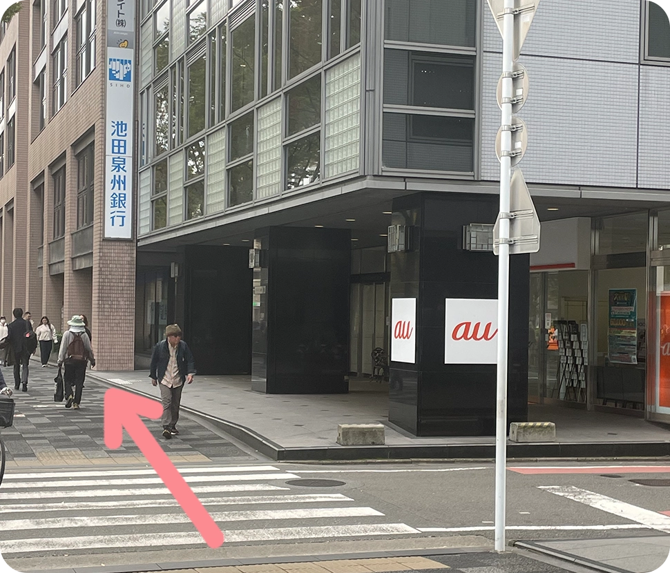 出口を出ましてauショップさんを