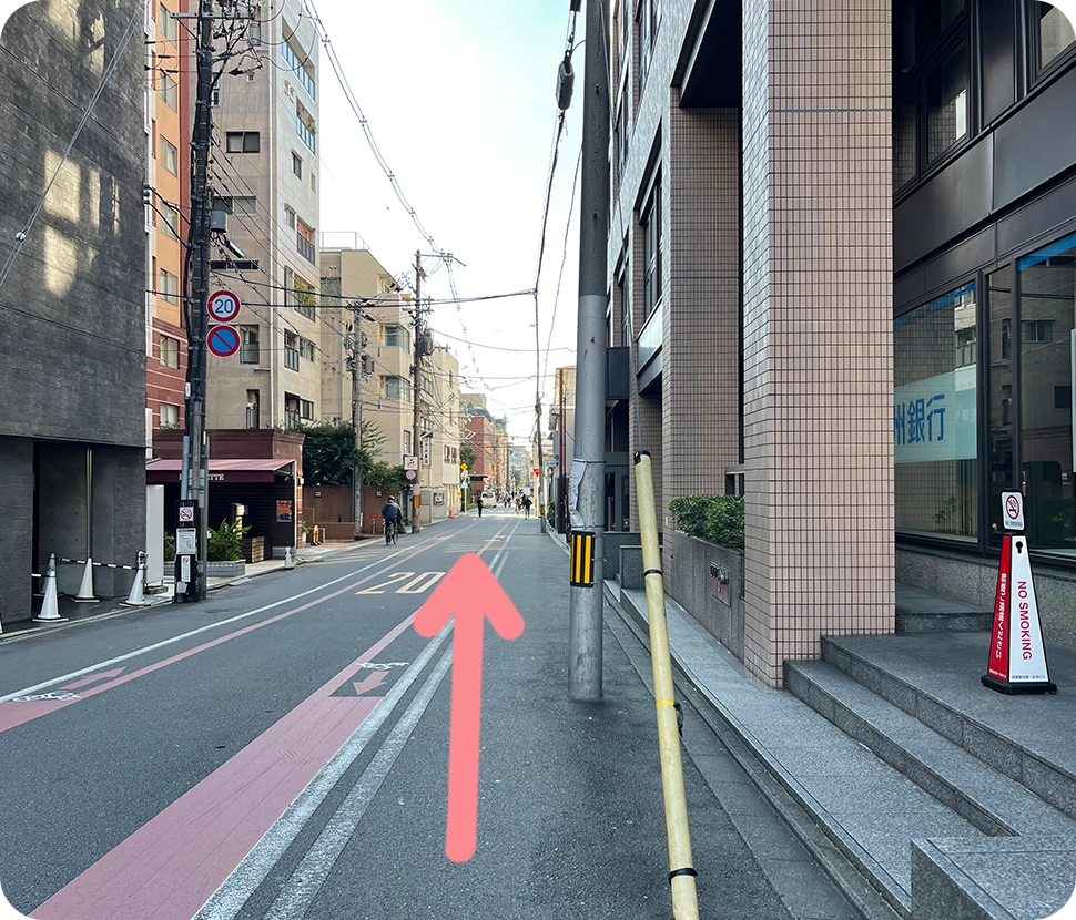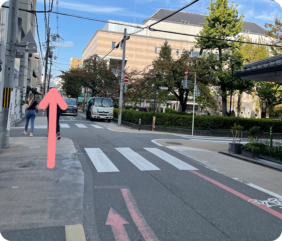 地上へ出たらすぐ左に曲がります
