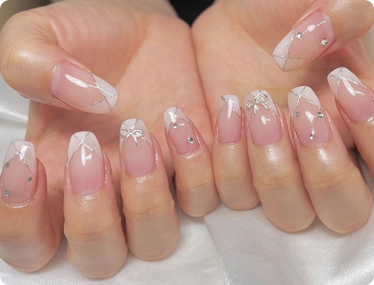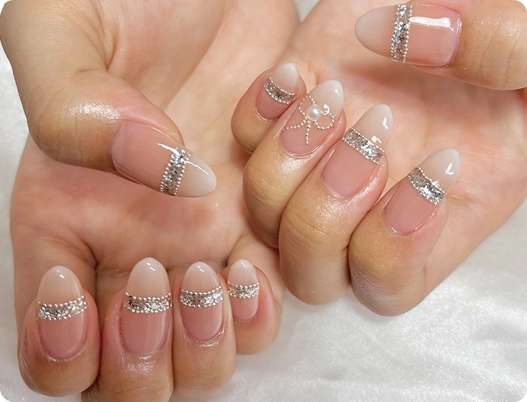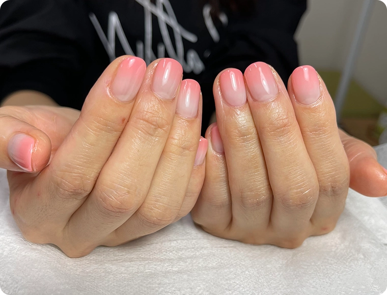 先端から根元にかけて色が薄くなるグラデーションは爪が小さい方も爪を長くすらっと見せることができます。伸びて隙間が気になる方におすすめです。ラメグラデーションも対応しています。